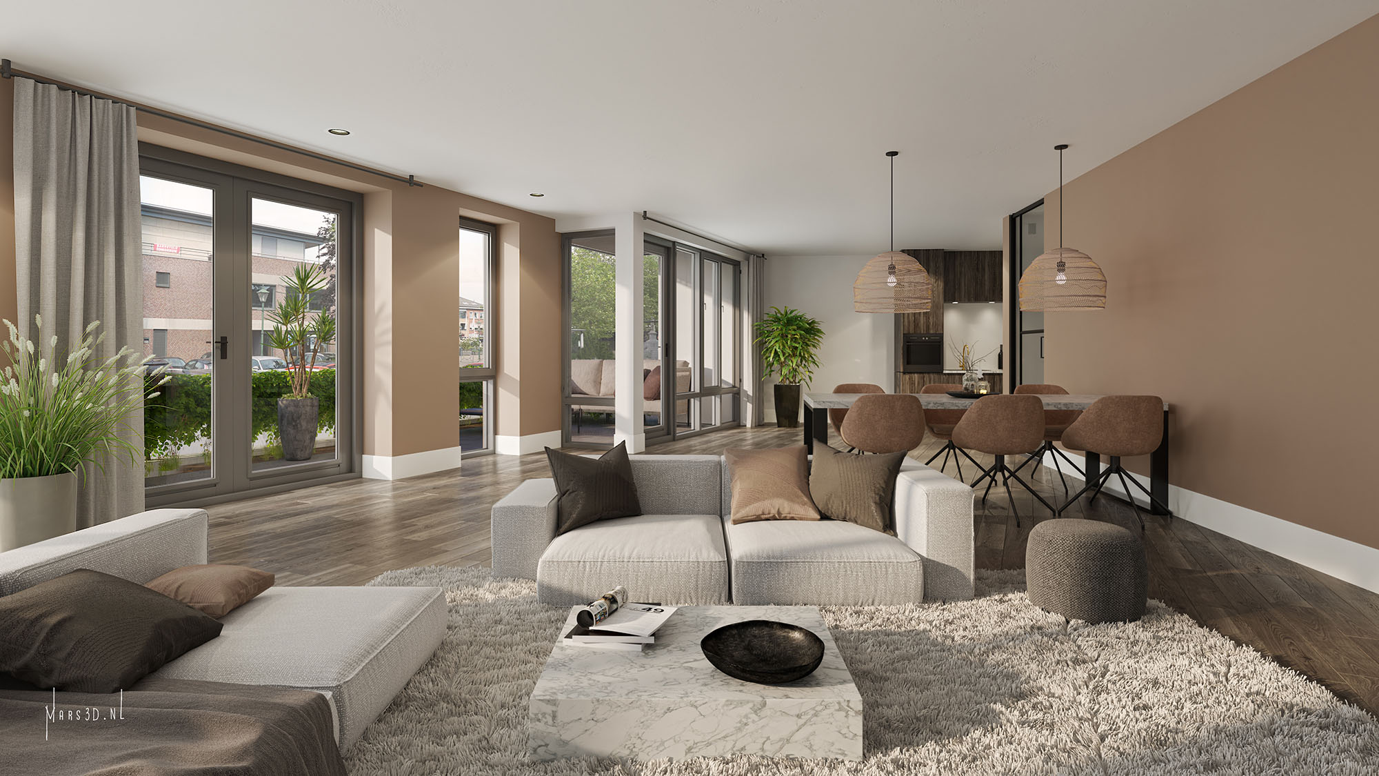 Interieur impressies, ook wel bekend als artist impressions, zijn interieur impressies van de binnenkant van woningen en gebouwen. Deze kunnen op verschillende manieren worden gepresenteerd. Bij Mars 3D bieden we zowel 3D visualisaties als handschetsen als mogelijkheden. Samen met onze klanten bepalen we welke stijl het meest geschikt is voor elk project en welke stijl het beste aansluit bij de doelgroep.