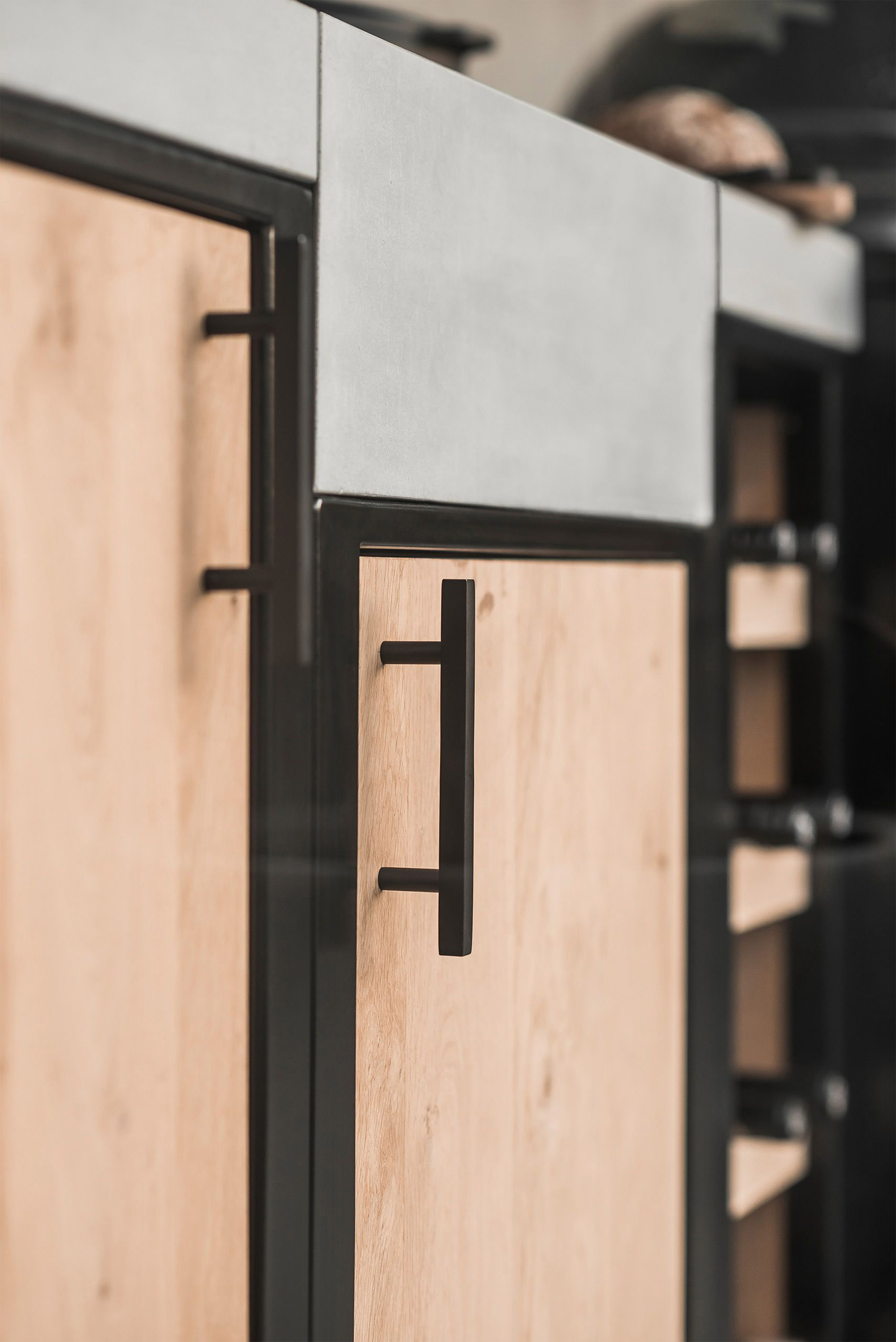 Martin kwam met het idee om een keuken-element te maken die bestaat uit twee fronten: een stalen front en een houten front. Met als mogelijkheid een houten deur en een stalen deur in één enkel element. Wanneer je een keuken hebt gekocht met stalen deurtjes, kun je die met een kwartslag omtoveren tot een keuken met houten deuren! Na de eerste kinderziektes en het ontwerpen van de koppelingen volgde het moment voor een prototype: Twee stalen frames van model BP35.