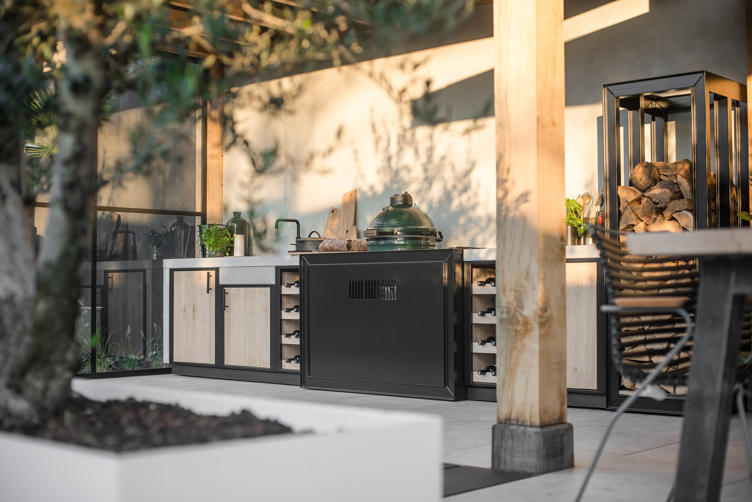 Na nog diverse aanpassingsronden was de Borrle geboren. Een laden kast, een wijnkast, een opslagrek voor haardblokken, een wasbak met Quooker, en een Kachel voor de Green Eggs.